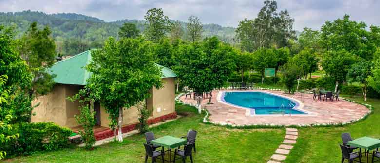 Tusk and Roar Corbett resort is located in Jhirna tourist zone in village Dhela and is only 1 km from the Safari gate of Corbett National Park. The resort spreads over 5 acres of land with two entry gates with backgate touching the forest and beautiful river. Resort is equipped with total 18 rooms. 8 concrete villas, 8 mud houses, 1 family suite. The restaurant has a seating capacity of approx 80 covers. Tusk and Roar Corbett Resort, has hosted visitors from all over the world as the ideal gateway to Jim Corbett National Park. We present the sparkling waters of the river at your doorstep, exotic bird sightings from our Resort and the calls of the wild around the luxury of your rooms. For every season and every occasion we are one of the Corbett's most loved destinations.